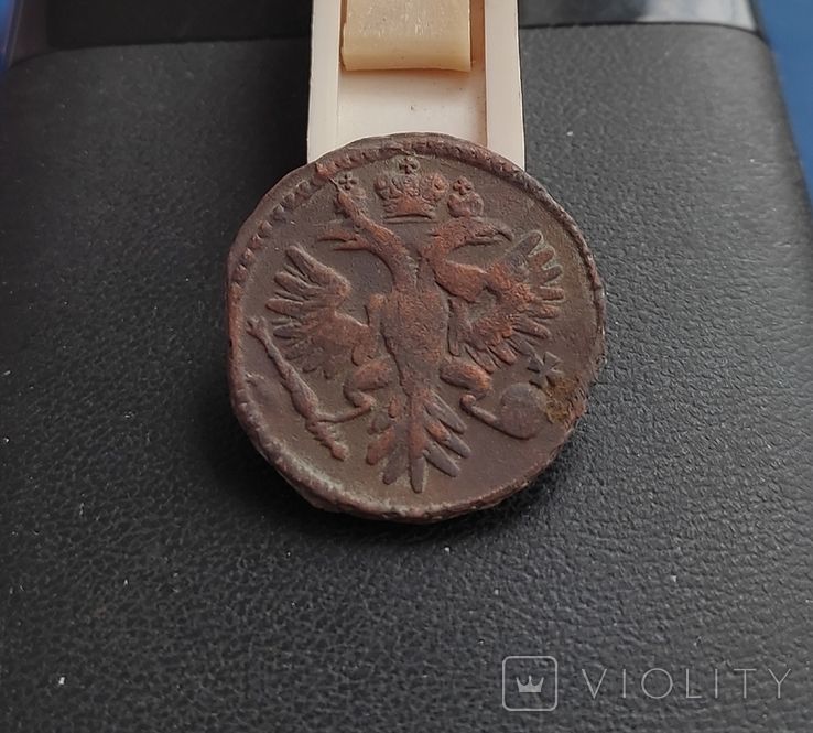 Доброго дня. Свежий проход деньги 1731 года. Перечекан с явными следами от легенды Петра Алексеевича. Из земли после реставрации. Монета со старта в 1 грн., через 34 ставки финишировала с ценой 700 грн. Проход на аукционе Виолити 26.05.2023 года. Фото прилагаю. С уважением.