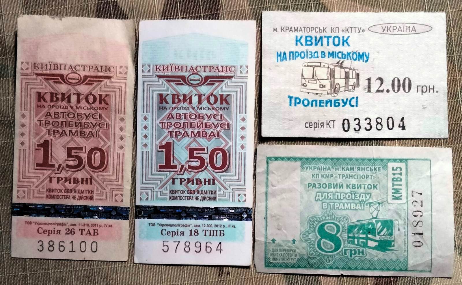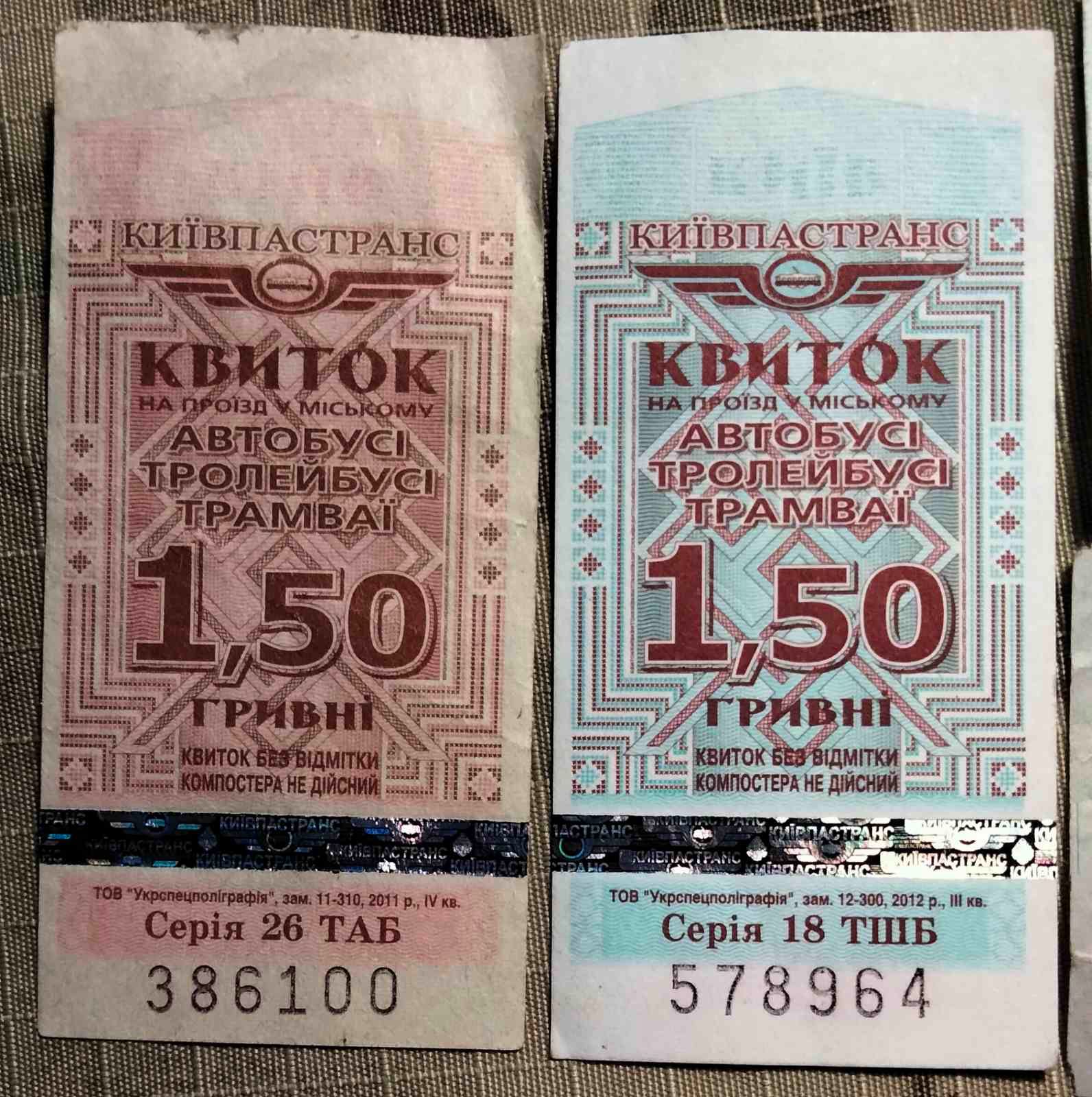Проїздні квитки гром. транспорту (Краматорськ, Кам"янське, Київ)