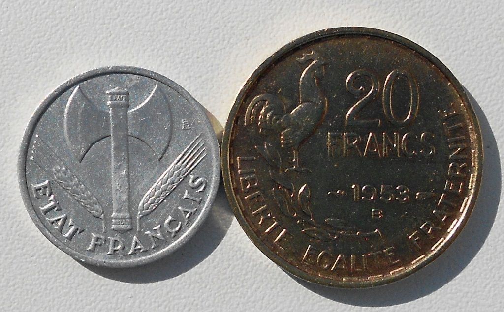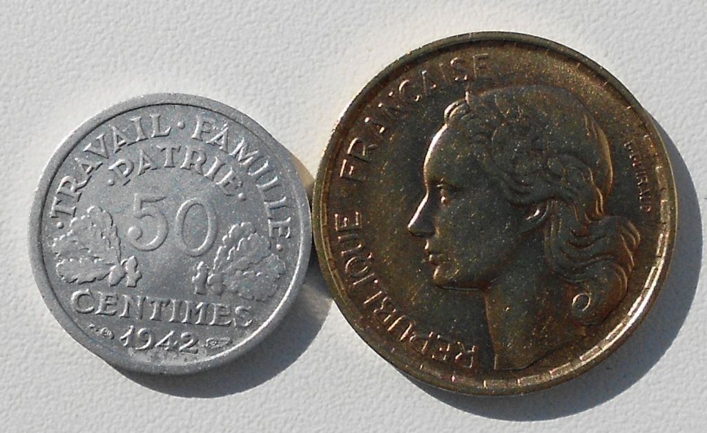 Франція 50 сантимів 1942 р., 20 франків 1953 р. (В).