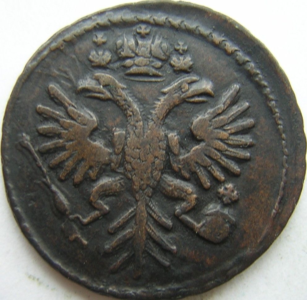 Доброго вечера. :) Деньга 1734 года, выпуска Красного МД. Монетный брак "Язык" в результате которого орел стал двухвостым. Фото прилагаю. ;) :hi: З повагою.