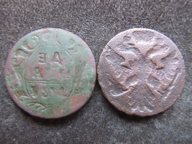 Доброго вечера. :) Полушки 1736 года, Красного и Екатеринбургского МД. ;) Инкузный брак. :shok: З повагою. :hi: :friends: