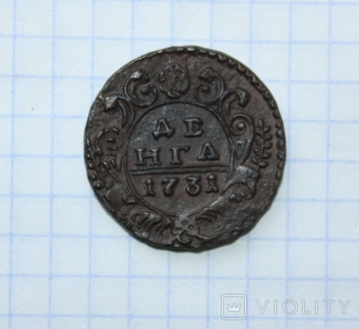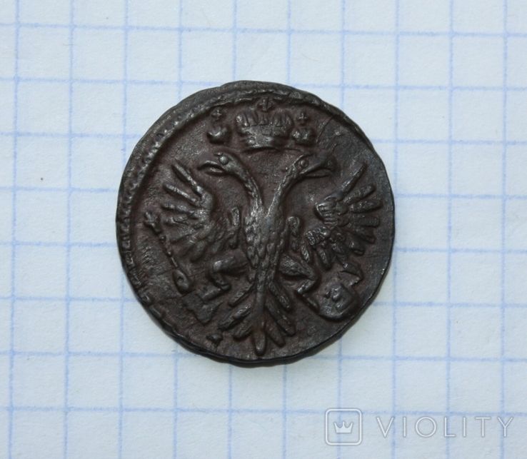 Вчерашний проход деньги перечекана, с явными следами от копейки Петра Алексеевича, выпуска Красного монетного двора, 1731 года, Хорошо заметны следы от легенды. Монета из земли. Самый распространенный 3-й шаблон реверса. Гурт сетчатый. Со старта в 1 гривну, через 64 ставки, достигла финишной цены в 182 грн. Проход на украинском аукционе 01.02.2026 года. Фото прилагаю.