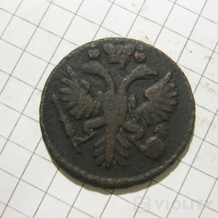 Недавний проход деньги перечекана, со слабыми следами от копейки Петра Алексеевича, выпуска Красного монетного двора, 1731 года. Реверс: Без разделительных черточек между номиналом и датой выпуска монеты. Гурт сетчатый. Монета из земли, реставрирована. 1-й шаблон реверса. Со старта в 1 гривну, через 6 ставок, достигла финишной цены в 300 грн. Проход на украинском аукционе 29.01.2026 года. Фото прилагаю.