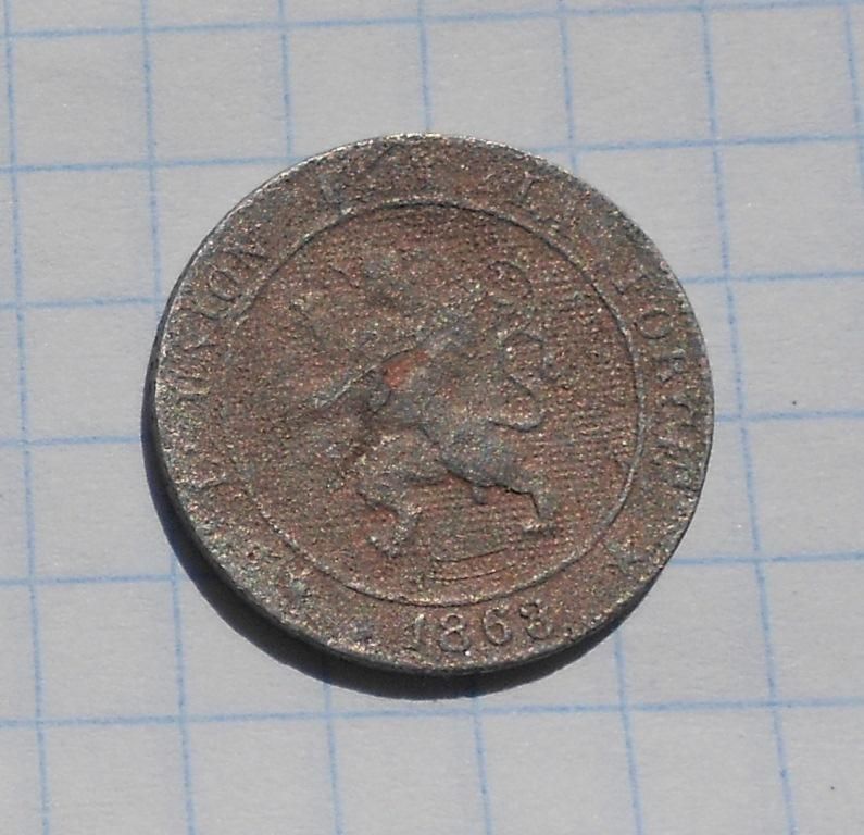 Бельгія 5 сантимів 1863 р.