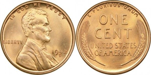 США. "Пшеничний" цент Лінкольна. Роки чеканки 1909-1958. Назву "пшеничний" отримав завдяки зображенню пшеничних колосків, які обрамляють номінал монети.