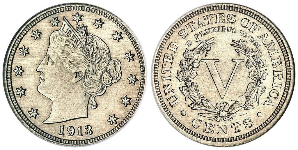 США. 5 центів "Голова Свободи" 1913 р. , нікелева. Коштує мільйони доларів, надзвичайно рідкісна монета, оскільки відомо існування лише 5-ти екземплярів.