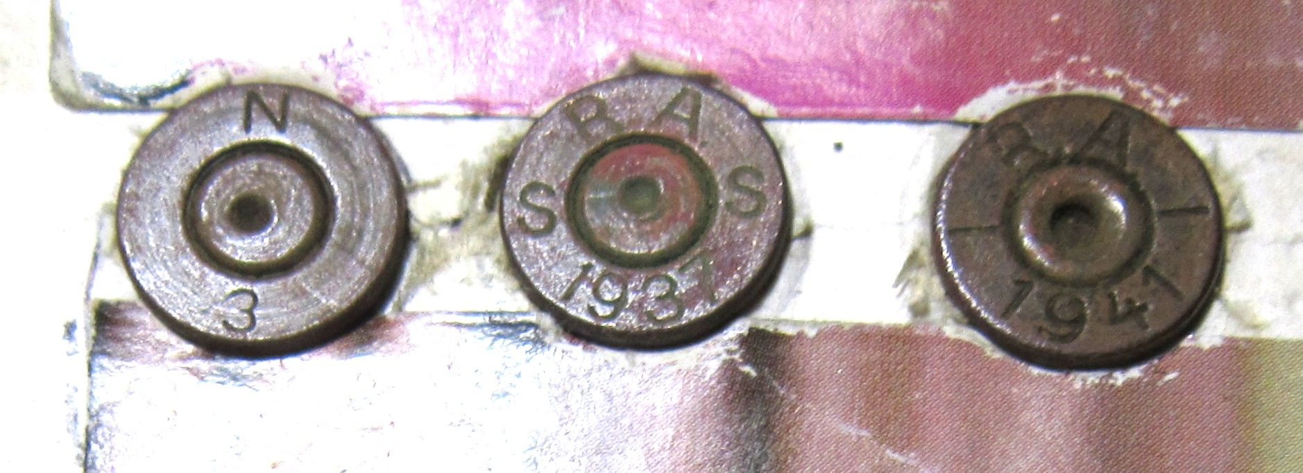 Продам 3 варианта клейм 7,92×57 Mauser(гильзы) производства норвежской фирмы Raufoss Ammunisjonsfabrikker(- 1936-1941.Без вмятин и повреждений--натуральная патина.Прекрасно подойдут для создания макетов.Цена -420 грн