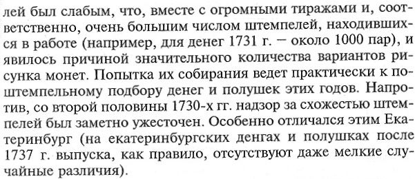 Доброго дня. Для наших уважаемых коллег, которым тема понравилась и у которых вызвала интерес, продолжу изложение, только теперь буду больше внимания уделять, более конкретным вопросам и деталям. И начну с выборки со статьи Г. С. Евдокимова, изданной в 2001 году, которую практически все коллеги считают лучшим литературным материалом по теме деньга-полушка 1730-54 годов и фактически ставшей уже классической литературой. На ее основе построено Руководство ЦФН по деньге-полушке 1730-54 годов и мы также, при издании своих Каталогов по деньге, опирались на архивные данные и выводы по изложенному материалу, сделанные автором в статье.