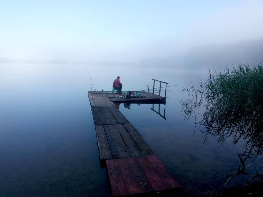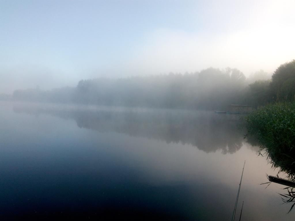 Повний штиль, вранішній туман (пара з води, круте красиве явище - фото не передає всієї краси), поруч ліс, неповторний запах, неймовірні звуки природи, спів птахів, спілкування....