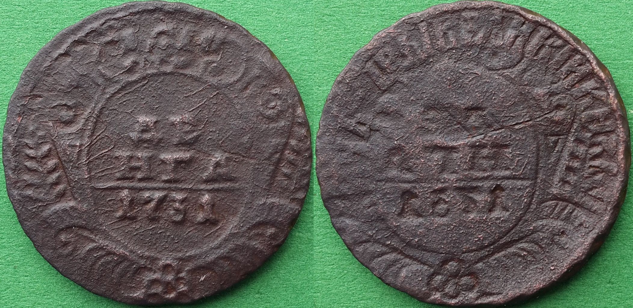 Красивые и интересные монетные браки деньги 1730-54 годов.