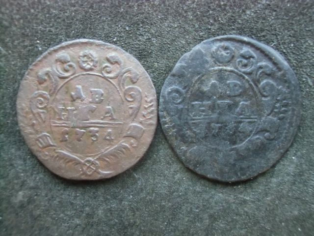 Красивые и интересные монетные браки деньги и полушки 1730-54 годов.