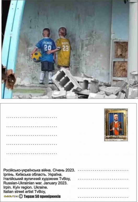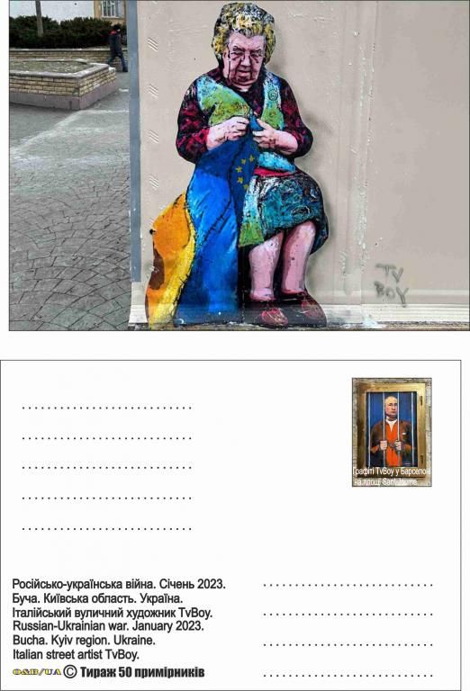 Артстріт графіті Tv Boy у Ірпіні, Бучі, Барселоні