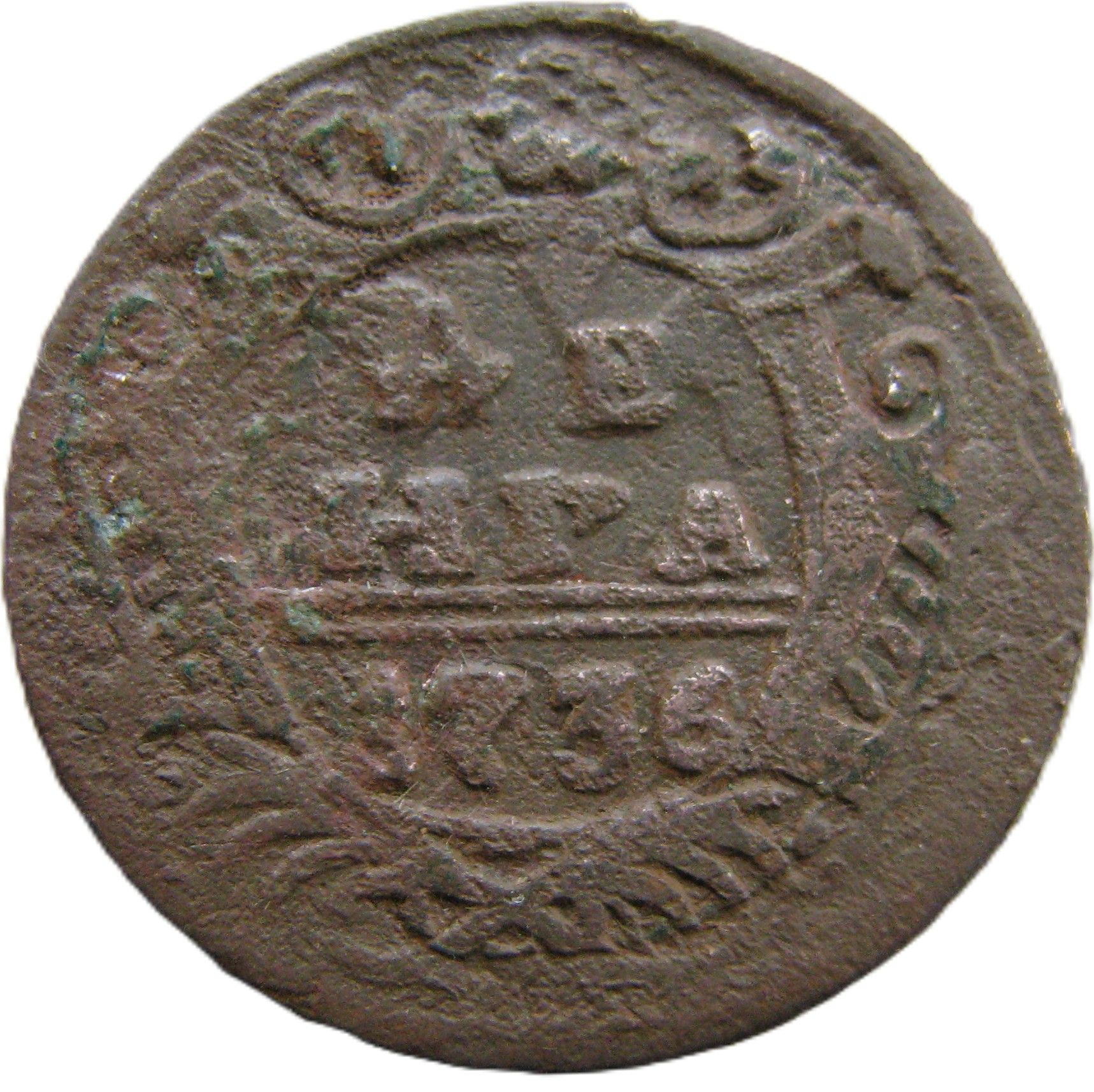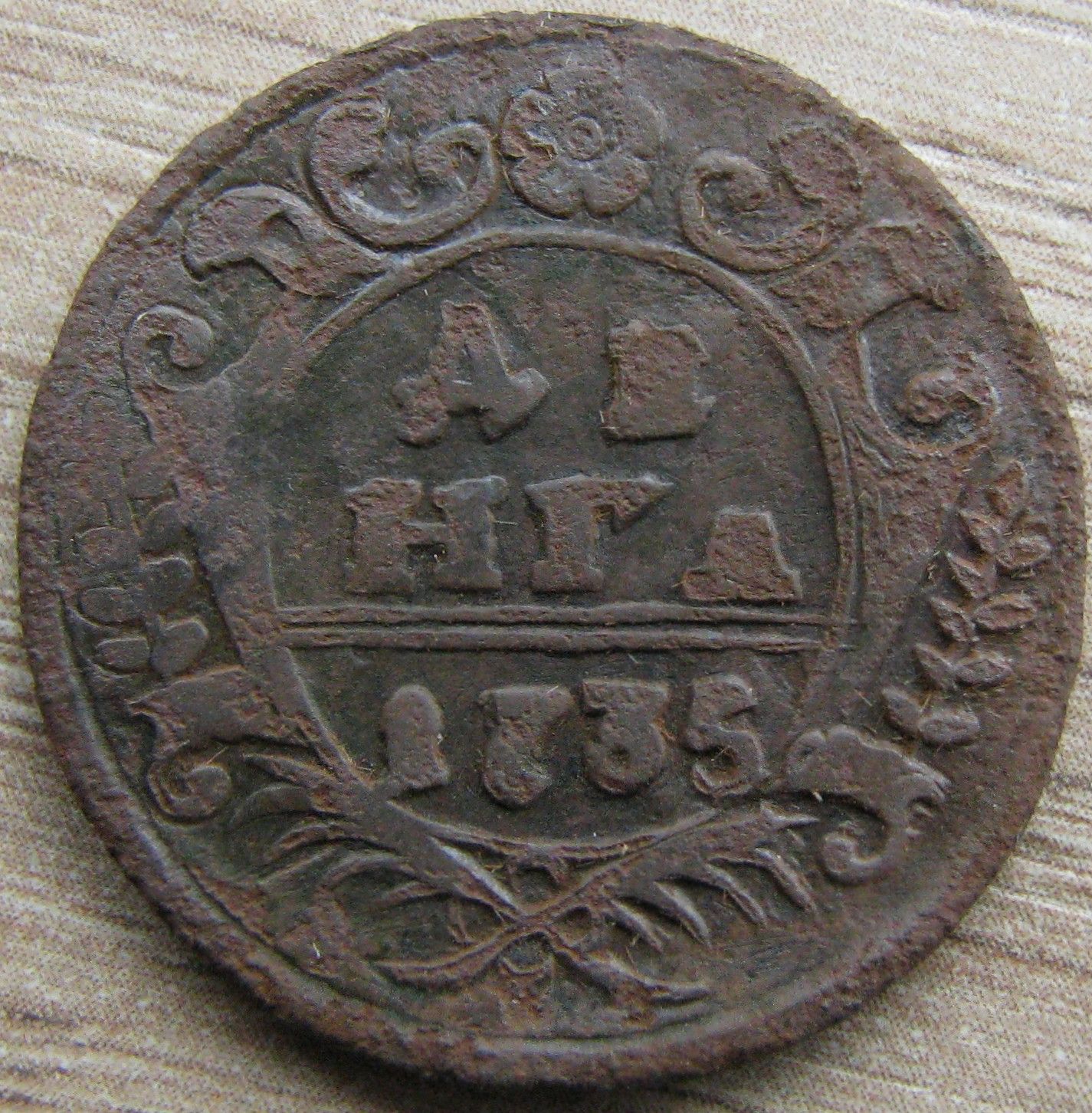 Исследования деньги 1735 года. Штемпельные разновидности.