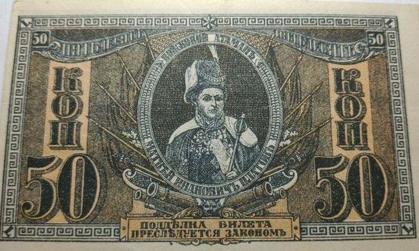 Гроші білогвардійців часів громадянської війни 20-х років 20-го століття з зображенням атамана Платова