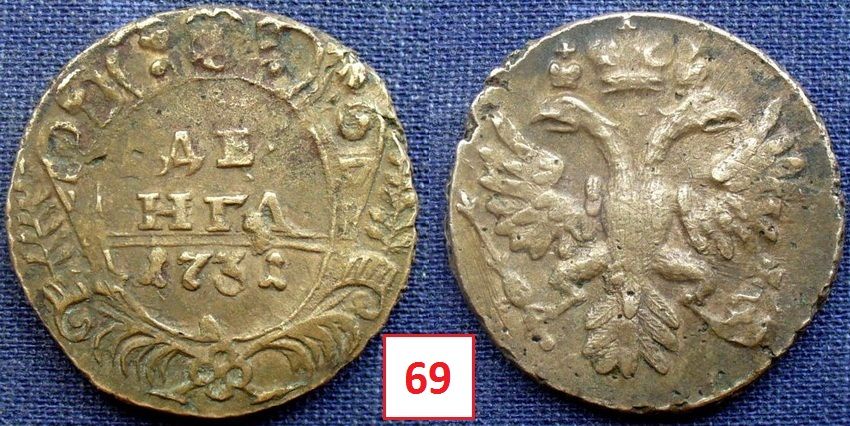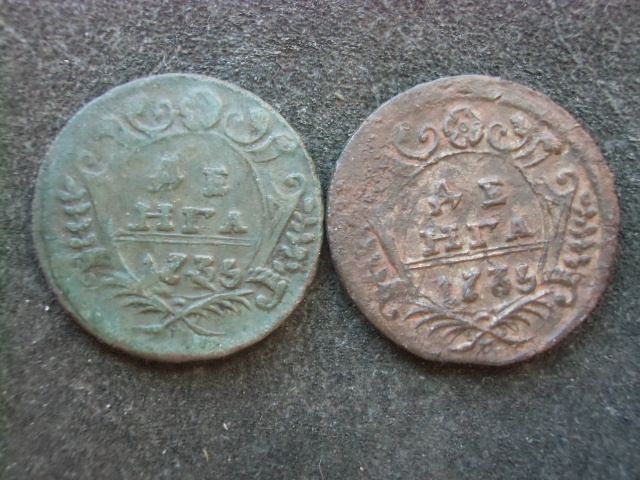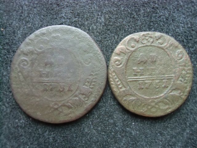 Мы не касаемся случаев, когда монету преднамеренно покрывают другим металлом по современным технологиям, преследуя корыстные или какие либо другие свои цели и интересы. Отмечу, что в то время на монетных дворах империи для замены штемпелей на ремонт и поломавшихся штемпелей, на списание, при длительной работе, проводилось не парой, а по мере необходимости замены штемпеля аверса или реверса. По этой причине, найти монету в состоянии не изношенности пары штемпелей очень проблематично. Это обычно была первая пара штемпелей, с которой и начинал свою работу печатный стан. Отмечу, что на характеристику состояния монеты, влияет как износ монеты при хождении, так и износ штемпелей при работе. В качестве примера приведу Екатеринбургскую деньгу 1748 года, где штемпель аверса в отличном состояние с хорошо различимыми деталями рисунка, а штемпель реверса имеет заметные следы изношенности при работе. В случае значительного хождения монеты, были бы заметны хотя бы, какие то следы износа не только реверса, но и аверса. С уважением.