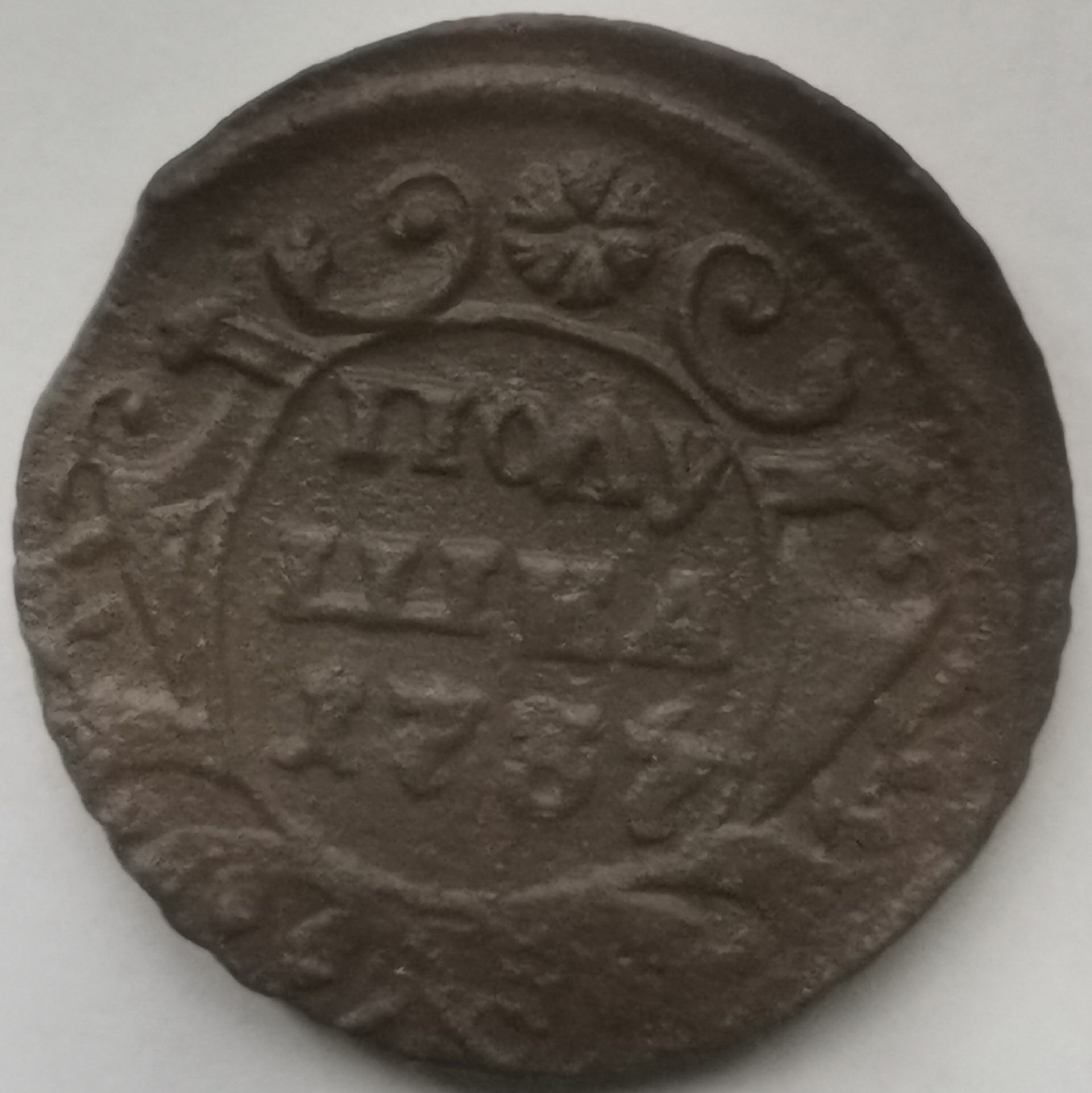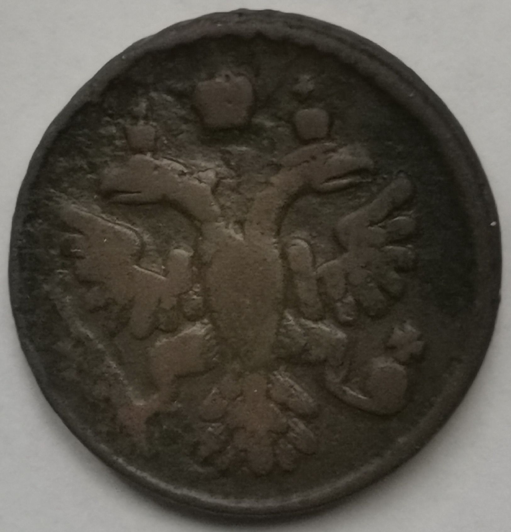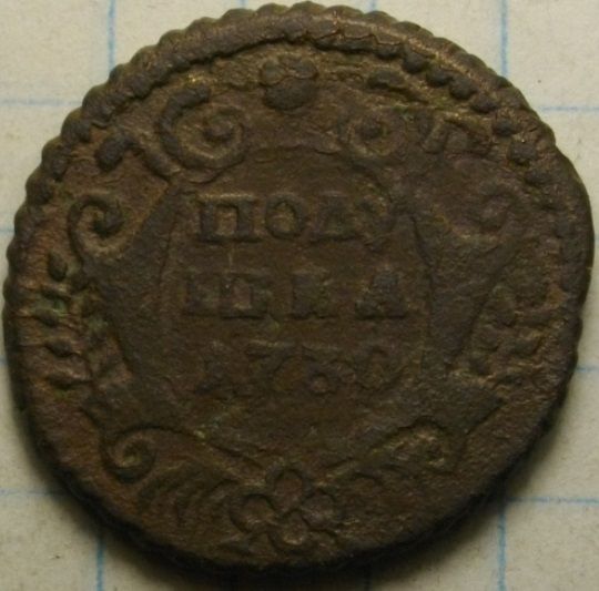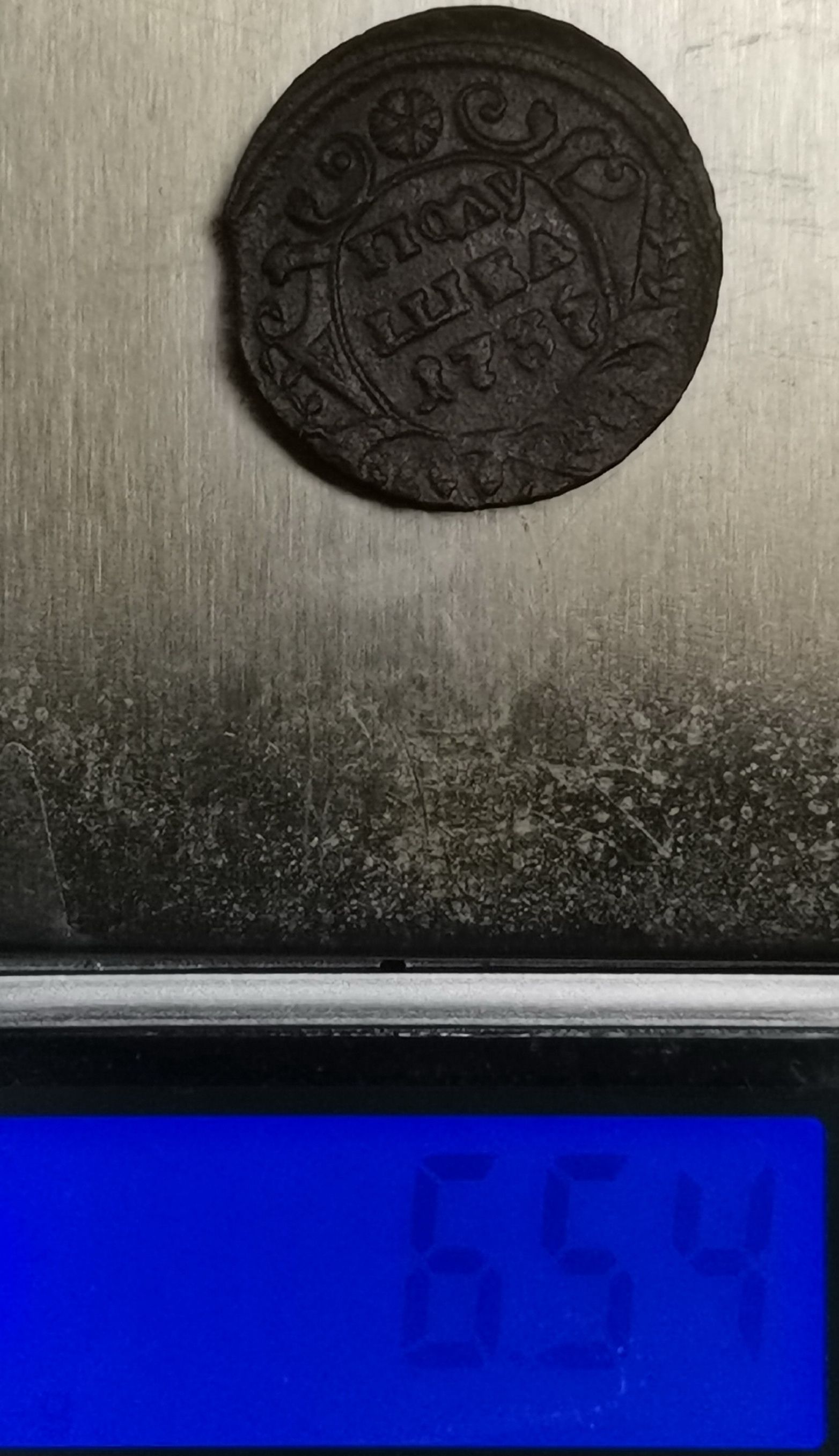 Доброго дня. Рекордсменка в перевесе 1739 года среди полушек с весом в 5,62 гр., который составляет 137,07%, от установленного среднего веса для полушки в 4,10 гр. Выпуск Екатеринбургского монетного двора. Фото прилагаю. С уважением.