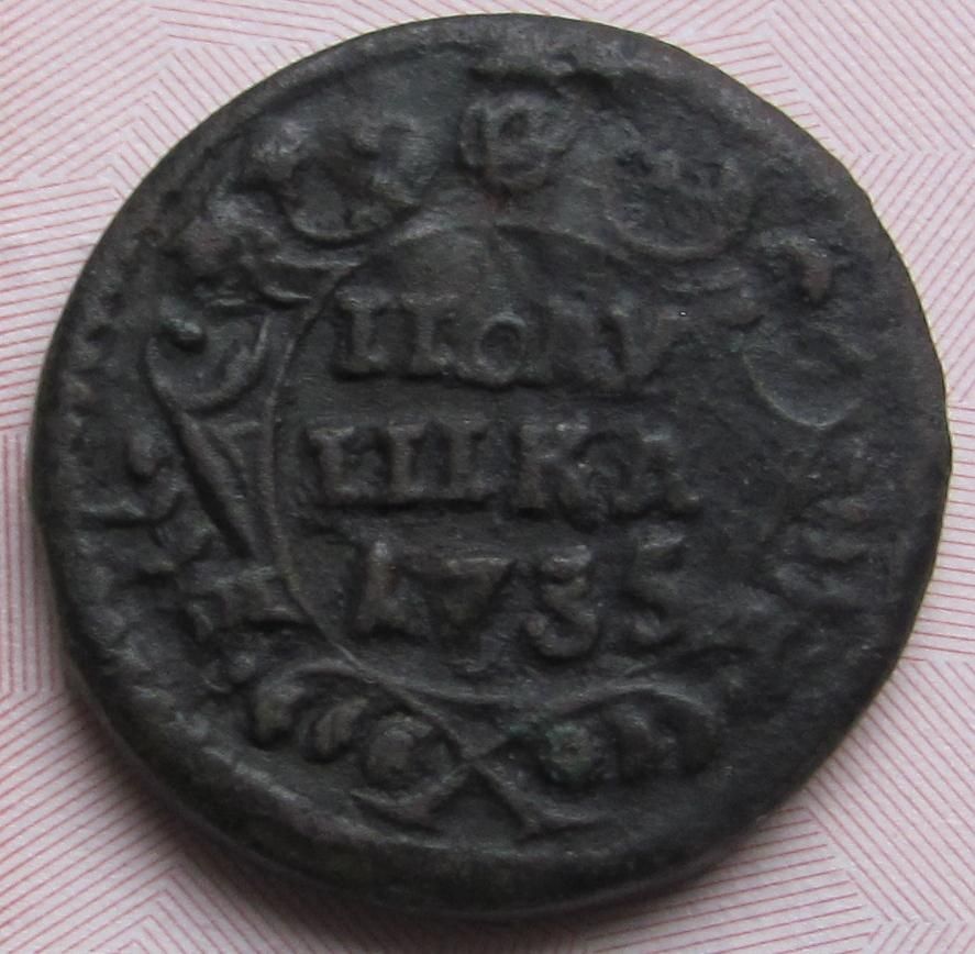Доброго дня. Рекордсменка в перевесе 1739 года среди полушек с весом в 5,62 гр., который составляет 137,07%, от установленного среднего веса для полушки в 4,10 гр. Выпуск Екатеринбургского монетного двора. Фото прилагаю. С уважением.