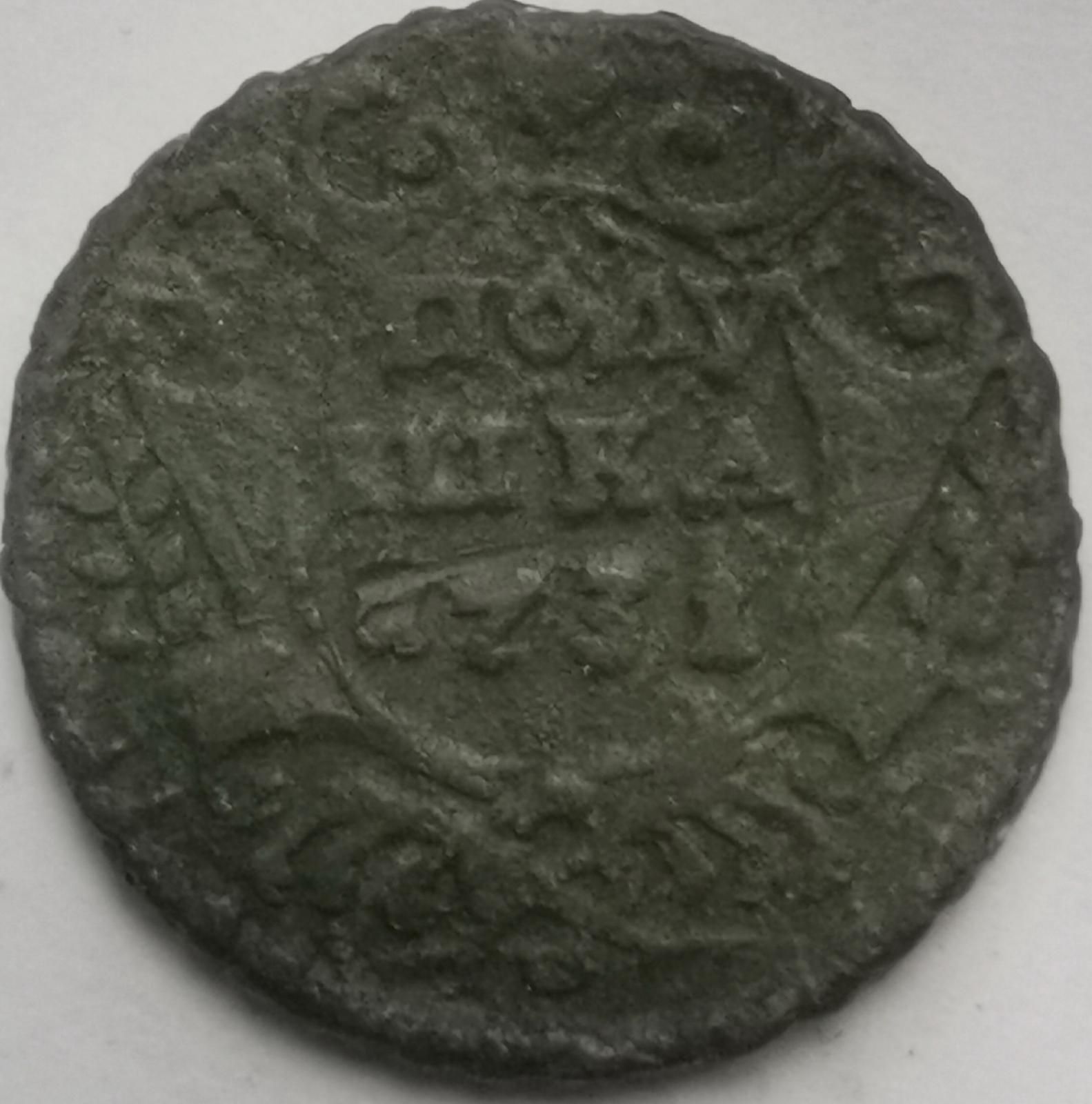 Рекордсменка в перевесе 1731 года среди полушек-перечеканов с весом в 5,52 гр., который составляет 134,63%, от установленного среднего веса для полушки в 4,10 гр. Полушка также является перечеканом из «крестовой» копейки, как и полушка 1730 года, показанная ранее. Фото прилагаю. С уважением.