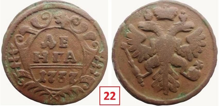 Монета действительно редкая и поэтому она в нашей таблице заняла далеко не последнее место. По многим позициям ЦФН у нас разные мнения и ЕМД 1737 года с остями не стало исключением![]()