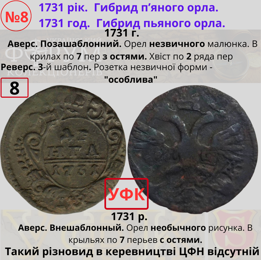 Топ-50 монет номиналом "денга" 1730-1754 гг.