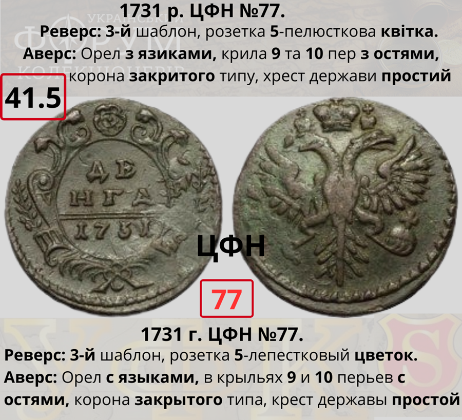 Топ-50 монет номиналом "денга" 1730-1754 гг.