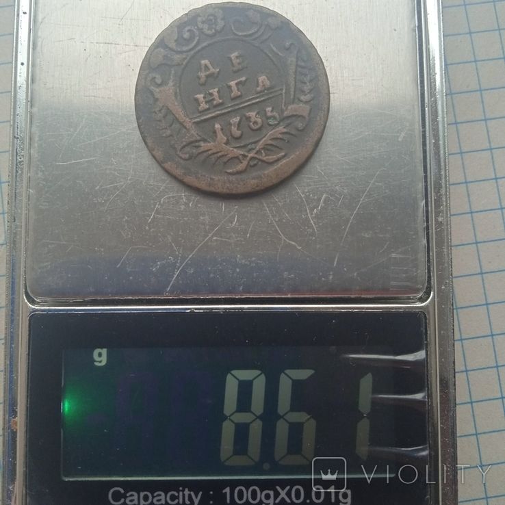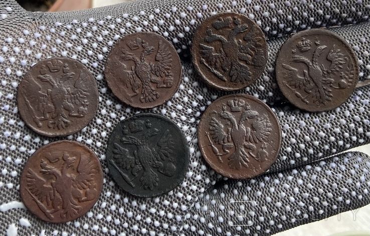 Сегодняшний проход лота из 7-ми монет с деньгой 1735 года. Разновидность,- розетка 4-е лепестка, 4-й шаблон реверса. Выпуск Временного монетного двора Плащильная Мельница на р. Яуза, г. Москва. Анна Иоанновна. Гурт сетчатый. Со старта в 1 гривну, через 67 ставки, достигла финишной цены в 1 474 грн. Проход на украинском аукционе 04.02.2024 года. Фото прилагаю. К сожалению по уважительной причине не смог увидеть окончание торгов и ник победителя.