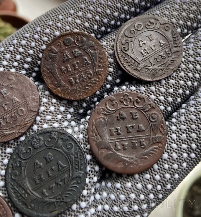 Интересные проходы деньга-полушка 1730-1754 гг. на аукционах