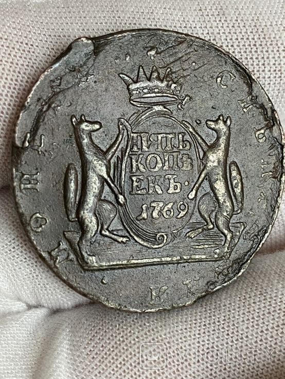 Позавчерашний проход 5 копеек, монета сибирская 1769 года, КМ. Екатерина II. Общегосударственный выпуск для регионов Сибири. Проход 22.12.2024 года, на украинском аукционе. Гурт шнуровидный. Со ставки в 1 грн., через 55 ставок с финишной ценой 6 051 грн. Монета не из земли. Фото прилагаю.