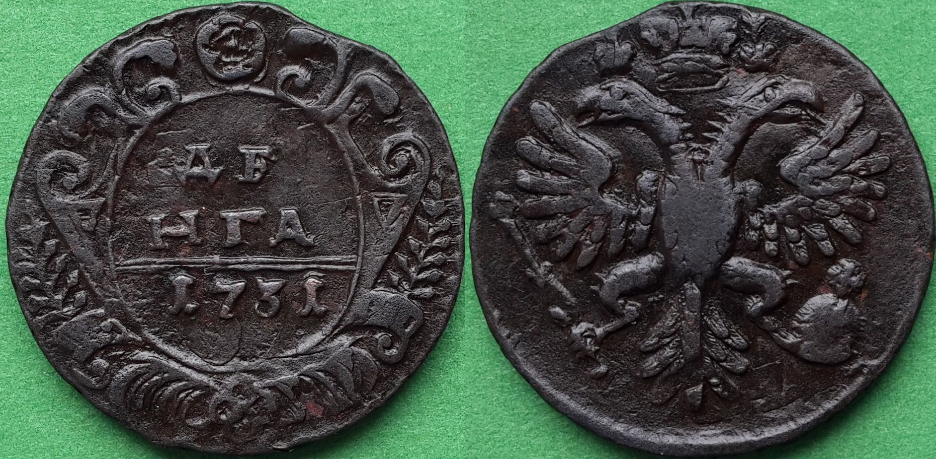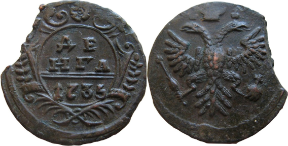 20. Денга 1734 года Орел с языками