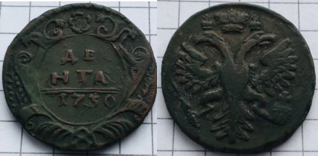26. Денга 1730-1731 года «Вилы», «Трилистник»