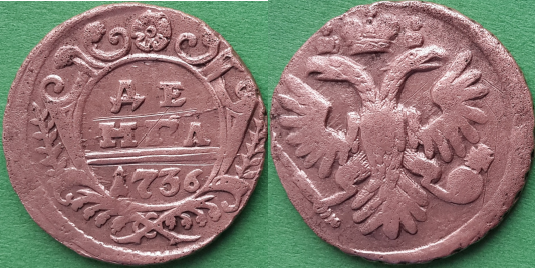 21. Денга 1736 года Орел с языками