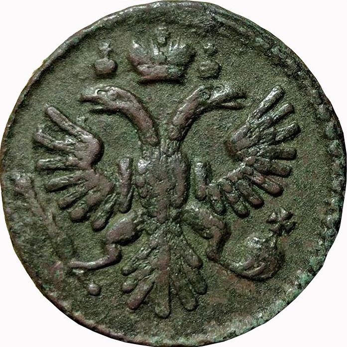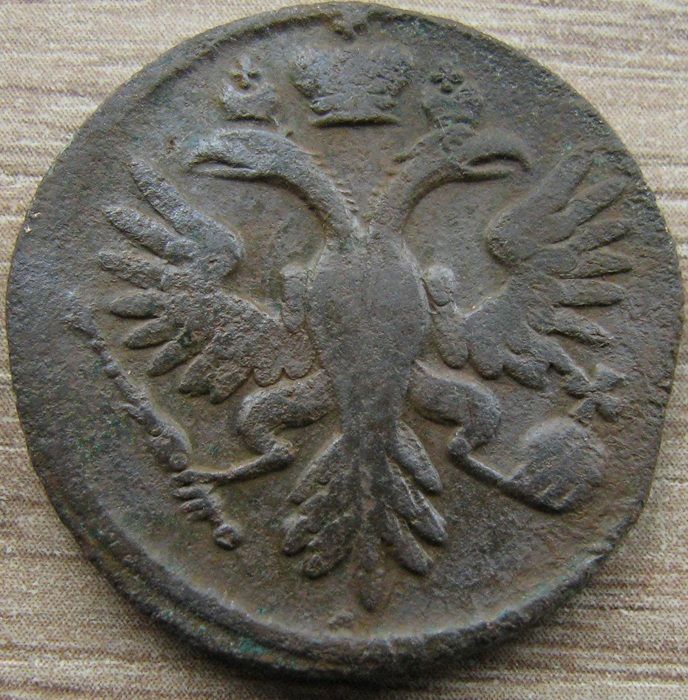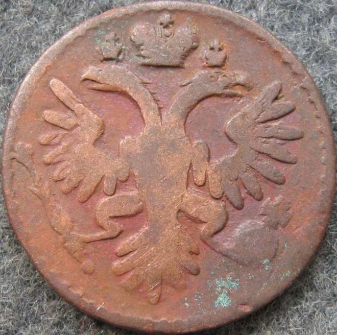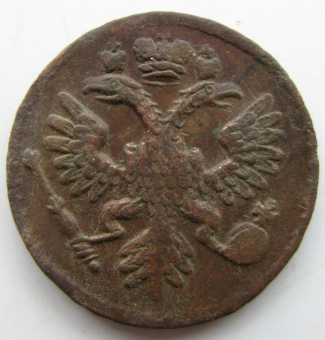 Вторая монета не менее интересная, чем первая. На малых коронах кресты в виде точек. Это одна из 4-х штемпельных разновидностей с таким интересным аверсом (орлом). Из других реверсов с одноштемпельным аверсом в паре нужно показать реверсы с 5-ти лепестковой розеткой обр. 1730 года и реверс с 5-ти лепестковой розеткой обр. 1734 года, что говорит о живучести данного штемпеля аверса и использование штемпеля в паре со штемпелями изготовленными различными мастерами изготовителями штемпелей, согласно статьи В. Н. Мещерякова. Фото прилагаю.