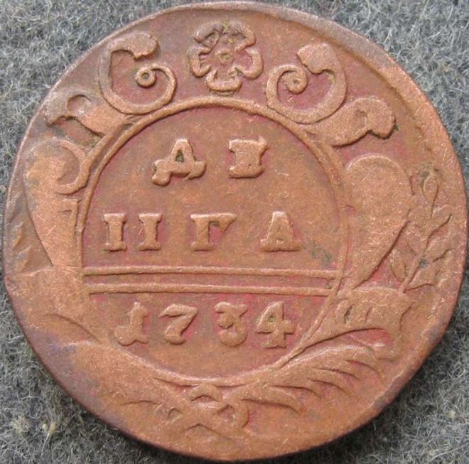 Исследования деньги 1734 года. Штемпельные разновидности.