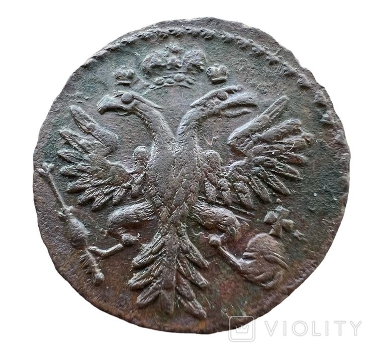 Вчерашний проход деньги перечекана выпуска Красного монетного двора, 1731 года, Монета не из земли, с хорошими следами от копейки Петра Алексеевича. Самый распространенный 3-й шаблон реверса. Гурт сетчатый. Со старта в 1 гривну, через 17 ставок, достигла финишной цены в 300 грн. Проход на украинском аукционе 29.09.2024 года. Фото прилагаю.