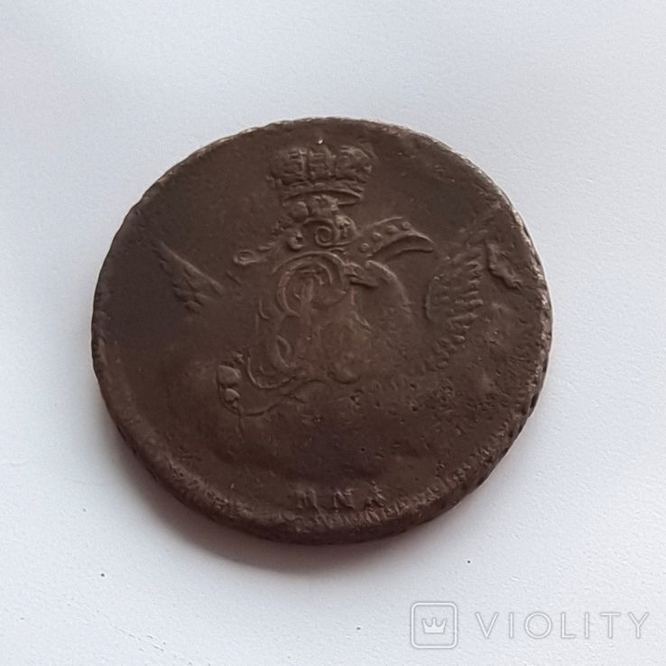 Вчерашний проход копейки "Орел на облаках" 1755 года, ММД. Елизавета Петровна. Перечекан из 5 копеек "крестовика". Красный монетный двор. Гурт сетчатый. Монета не из земли. Проход 08.02.2024 года, на украинском аукционе. Со ставки в 1 грн., через 62 ставки с финишной ценой 5 002 грн. Фото прилагаю.