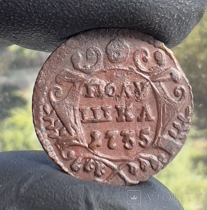 Недавний проход полушки выпуска Красного монетного двора 1734 года. Малые короны без крестов. Гурт шнуровидный. Со старта в 1 гривну с ценой в 100 грн. Монета из земли. Проход на украинском аукционе 15.10.2024 года. Фото прилагаю.