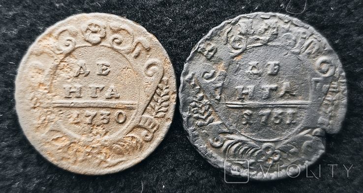Интересные проходы деньга-полушка 1730-1754 гг. на аукционах