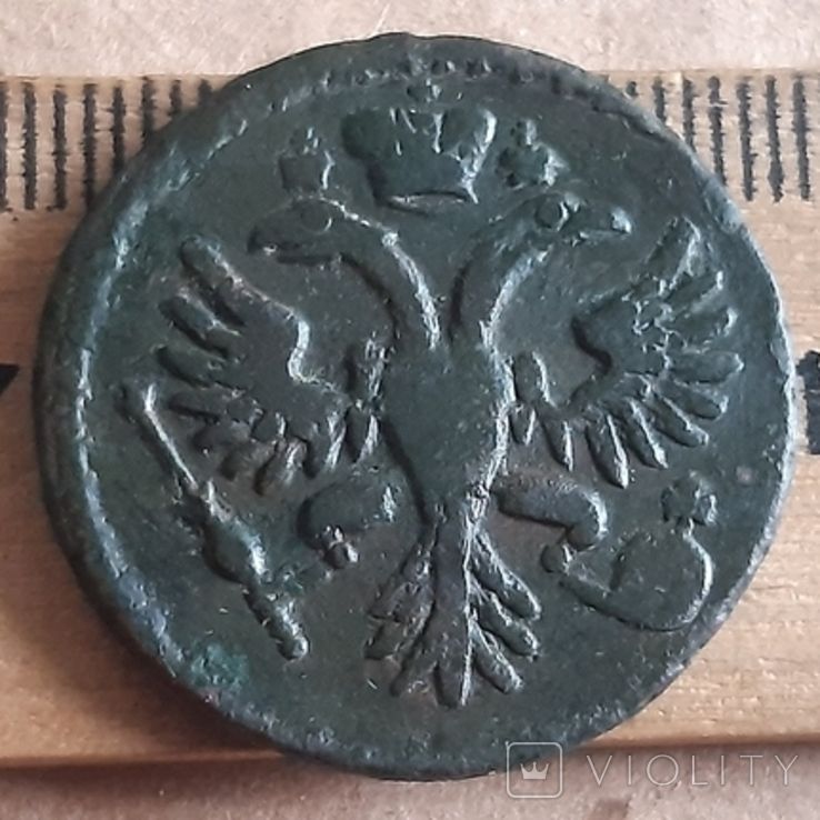 Вчерашний проход деньги 1743 года. Елизавета Петровна. Выпуск Красного монетного двора, Екатеринбургский тип. Монетный брак, двойной удар. Монета из земли, реставрирована. Гурт сетчатый. Куплена по блицу с финишной ценой в 250 грн. Проход на украинском аукционе 06.03.2025 года. Фото прилагаю.