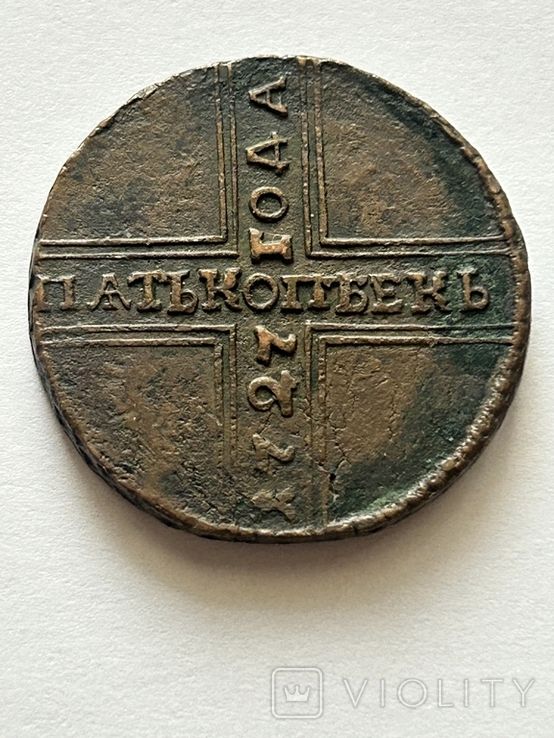 Недавний проход 5 копеек 1727 года, КД. Екатерина I. Кадашевский монетный двор. Проход 27.04.2025 года, на украинском аукционе. Гурт сетчатый. Со ставки в 1грн, через 35 ставки продан с финишной ценой в 2 502 грн. Монета из земли. Фото прилагаю.
