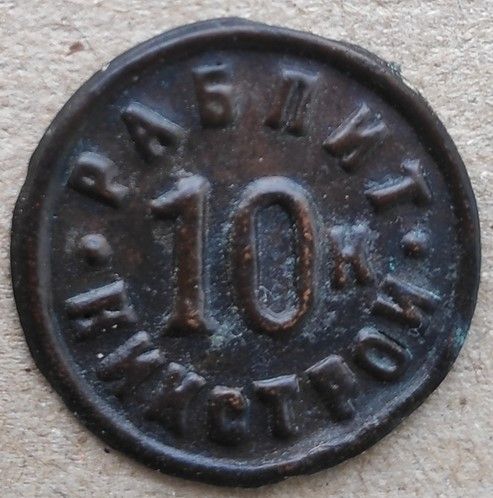 Продовжуючи тему платіжних жетонів закладів харчування: РАБПИТ НИКСТРОЙ, 10, 2, 5 коп.