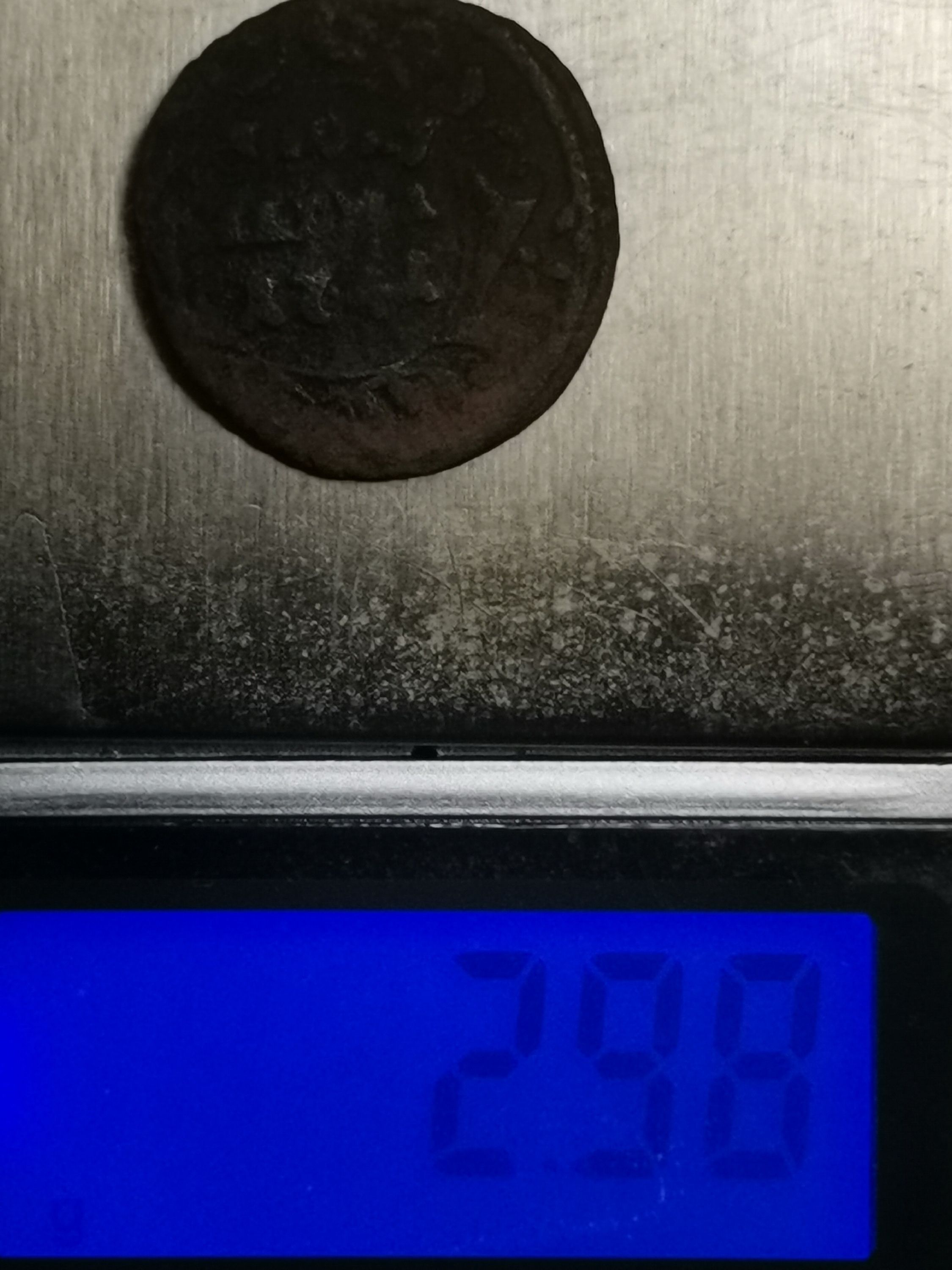 Доброго вечера. Рекордсменка в недовесе 1736 года среди полушек выпуска Екатеринбургского монетного двора с весом в 2,57 гр., который составляет 62,68%, от установленного среднего веса для полушки в 4,10 гр. Взвешивание проводилось на лабораторных весах. Фото прилагаю. С уважением.