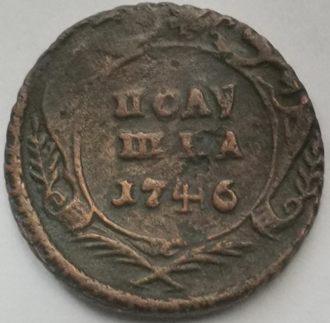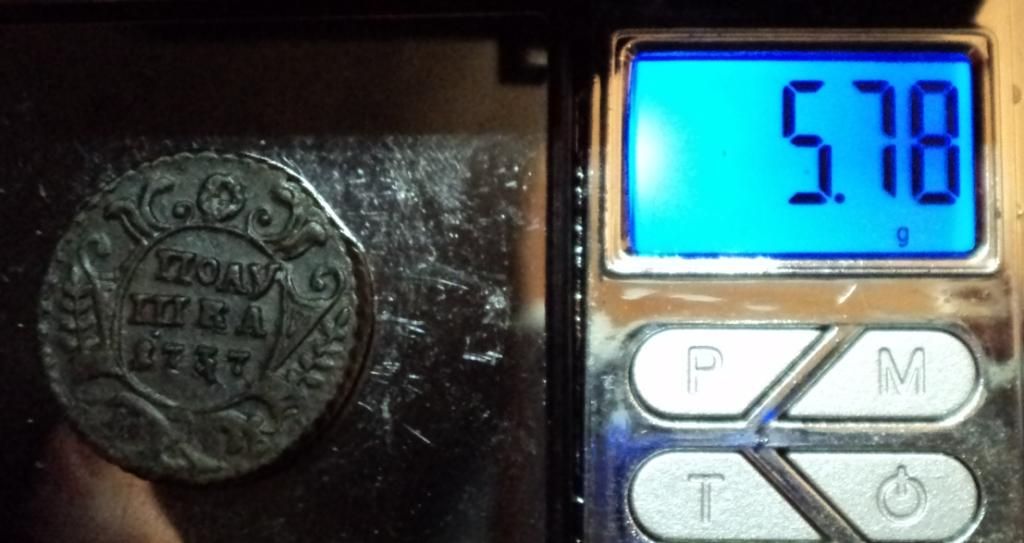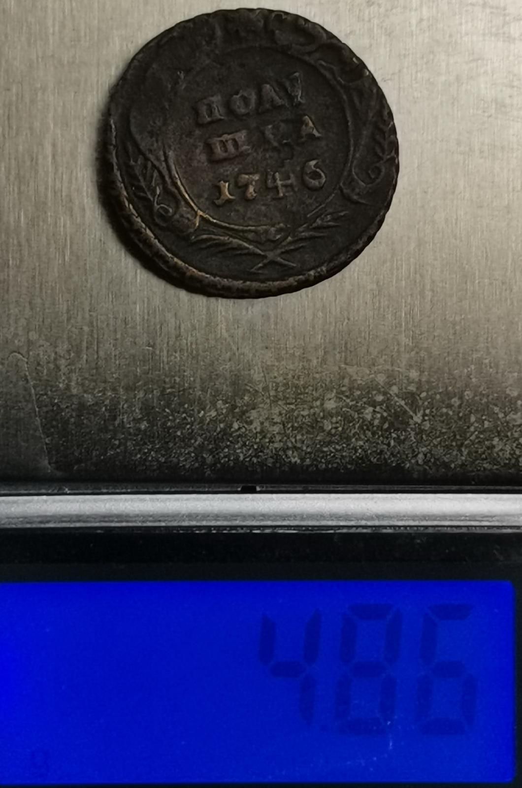 Доброго дня. Рекордсменка в перевесе 1746 года среди полушек выпуска Красного монетного двора с весом в 4,86 гр., который составляет 118,54%, от установленного среднего веса для полушки в 4,10 гр. Фото прилагаю. С уважением.
