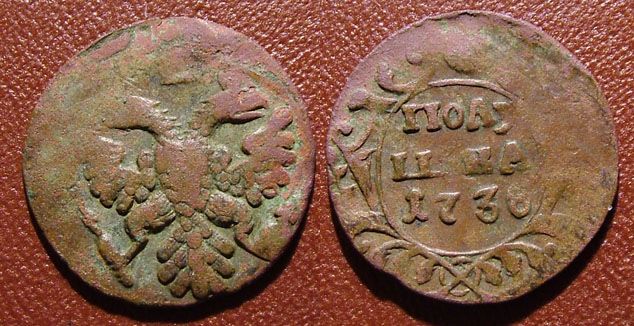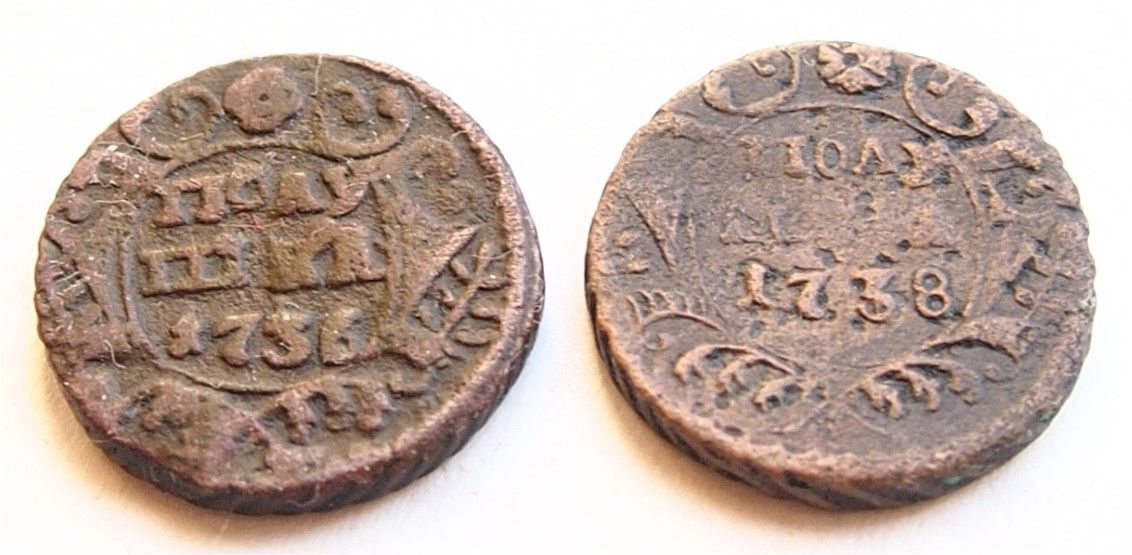 Тяжеловесные и легковесные деньги и полушка периода 1730-1754 годов