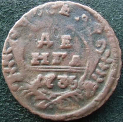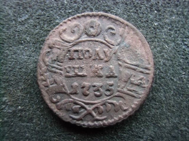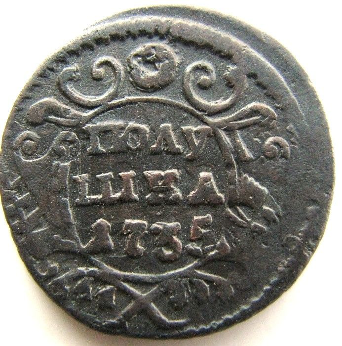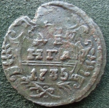 Доброго вечера. Полушка 1735 года, перечекан с явными следами от "крестовой" копейки.