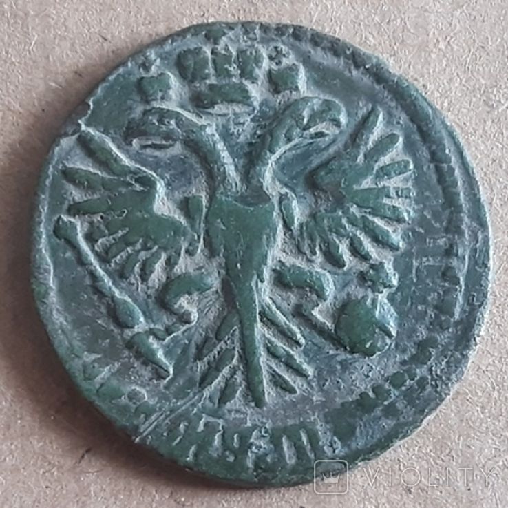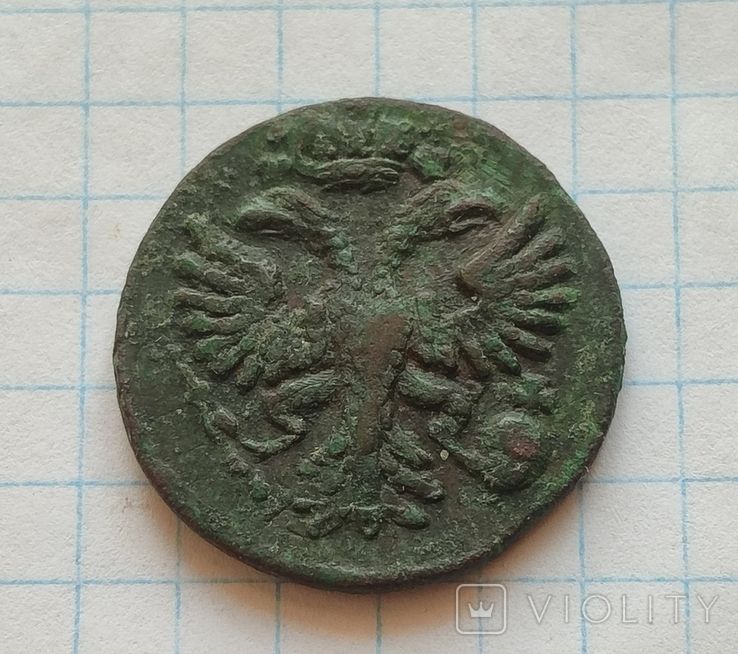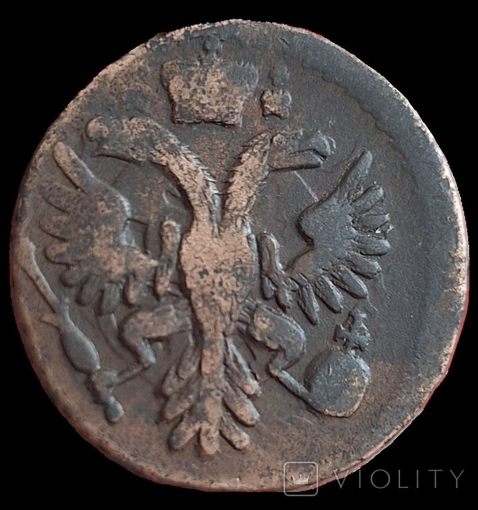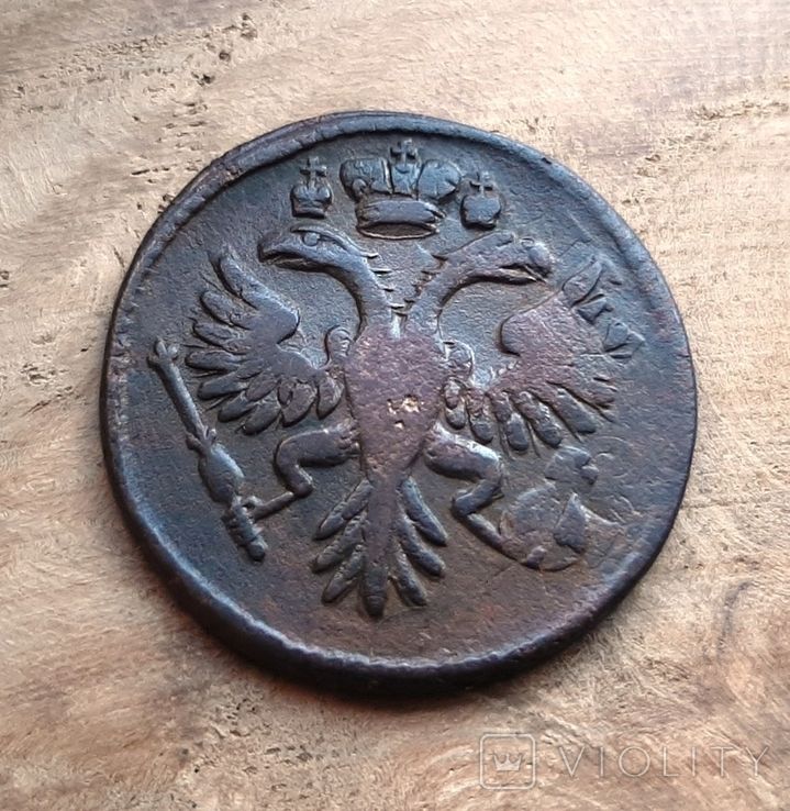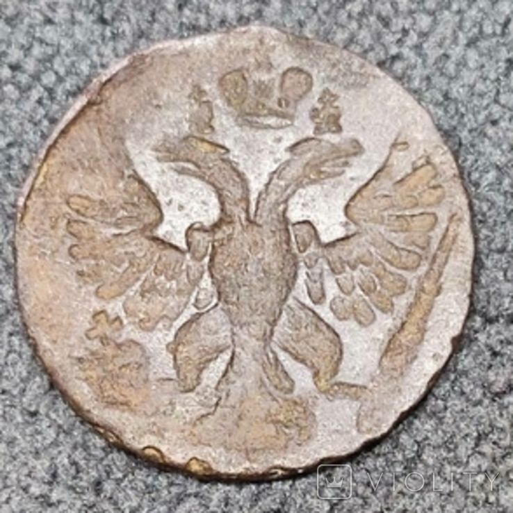 Доброго вечера. :) Сегодняшний проход деньги перечекана выпуска Красного монетного двора, 1731 года. Монета из земли, со следами от копейки Петра Алексеевича. Самый распространенный 3-й шаблон реверса. Гурт сетчатый. Со старта в 1 гривну, через 8 ставок, достигла финишной цены в 151 грн. Проход на украинском аукционе 23.03.2025 года. Фото прилагаю. :hi: С уважением.