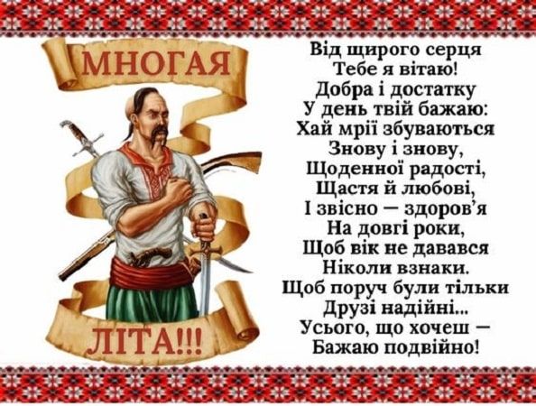 Вітаю з Днем народження! Нехай оточують тільки справжні друзі і однодумці, а всі починання увінчуються виключно успіхом! Бажаю невичерпних моральних і фізичних сил!