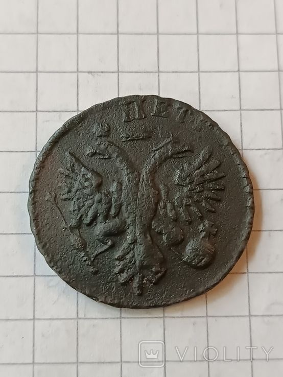 Недавний проход деньги перечекана выпуска Красного монетного двора, 1731 года, Монета из земли, со слабыми следами от копейки Петра Алексеевича. 1-й шаблон реверса. Гурт сетчатый. Со старта в 1 гривну, через 10 ставок, достигла финишной цены в 112 грн. Проход на украинском аукционе 16.03.2025 года. Фото прилагаю.