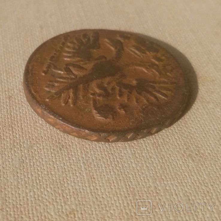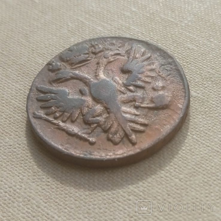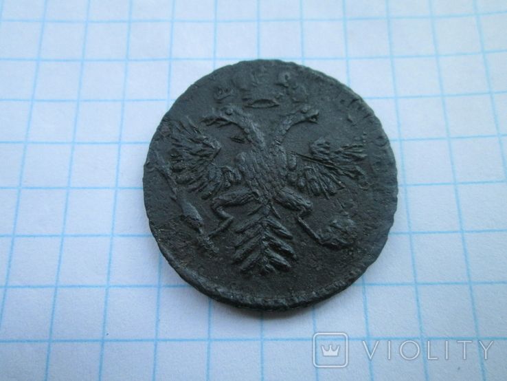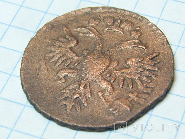 Недавний проход деньги перечекана, со слабыми следами от копейки Петра Алексеевича, выпуска Красного монетного двора, 1731 года, Не частый монетный брак. Без нанесения гурта (гурт гладкий). Перечекан произведен без гурчения копейки Петра Алексеевича. Монета из земли. Самый распространенный 3-й шаблон реверса. Со старта в 1 гривну, через 9 ставок, достигла финишной цены в 200 грн. Проход на украинском аукционе 04.06.2025 года. Фото прилагаю.