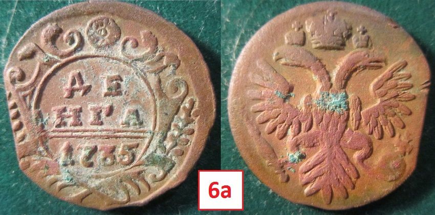 Исследования деньги 1735 года. Штемпельные разновидности.