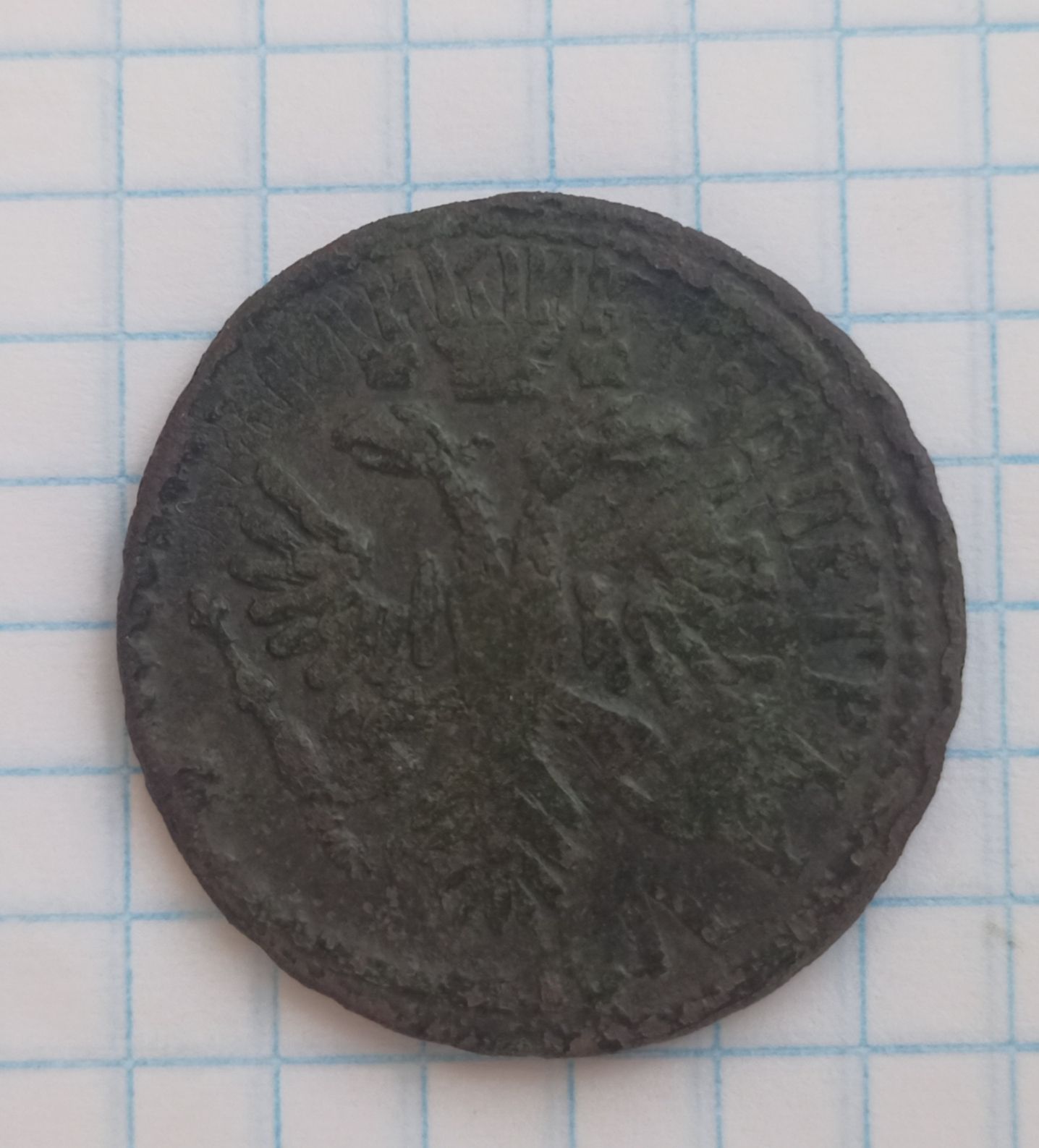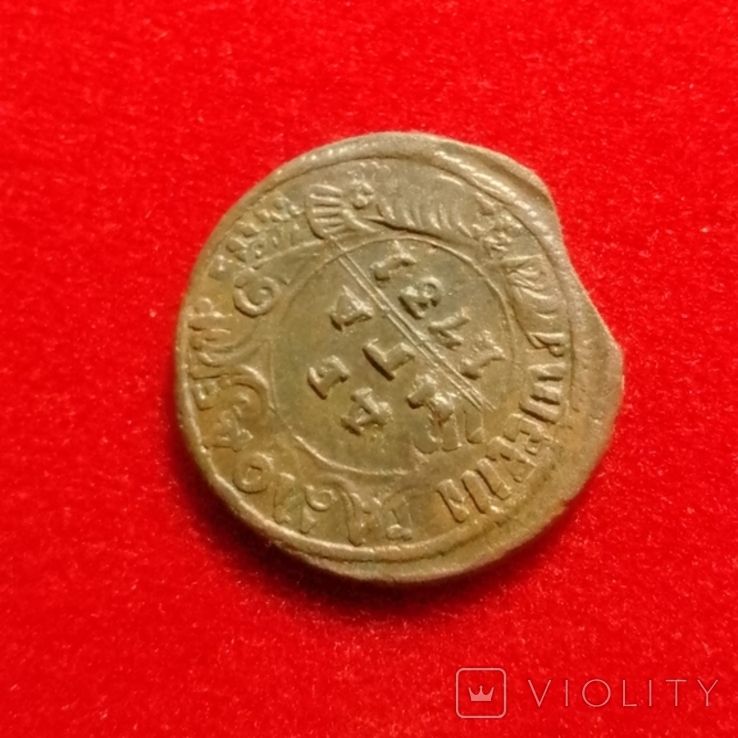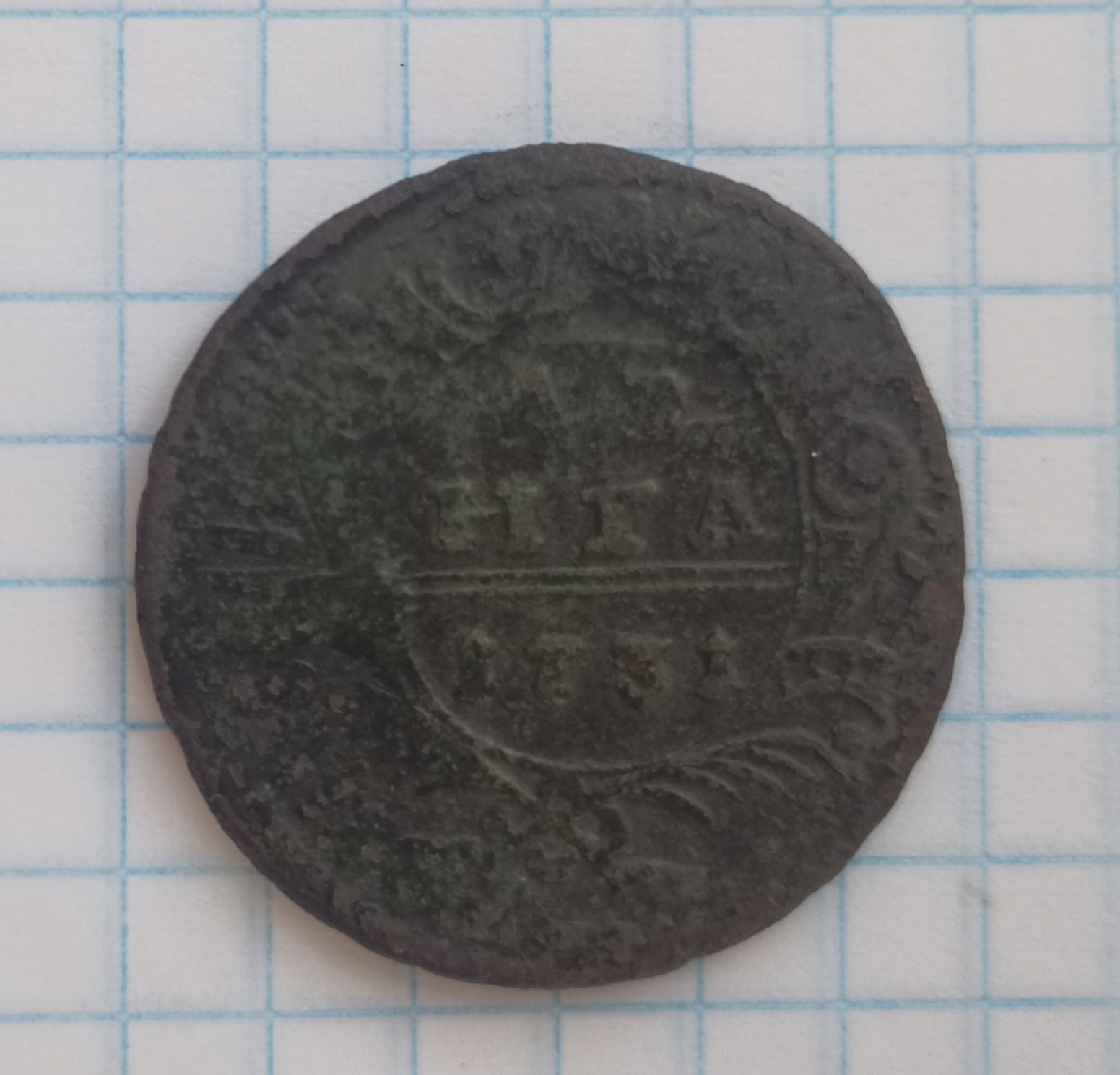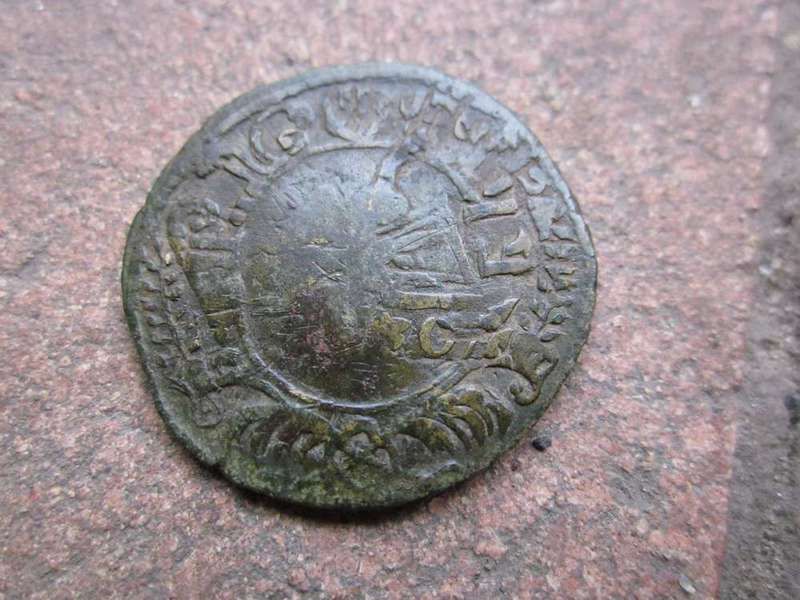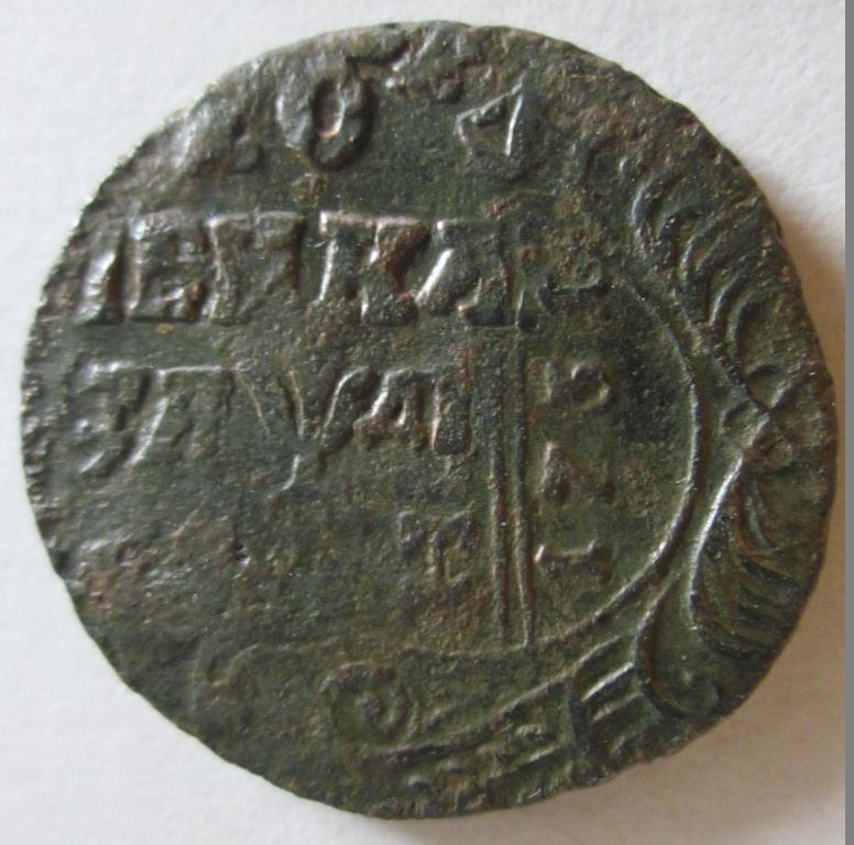 Доброго вечера. :) Перечекан деньги 1731 года из копейки Петра Алексеевича, с явными следами. ;) Хорошо заметны буквы легенды. :hi: С уважением.